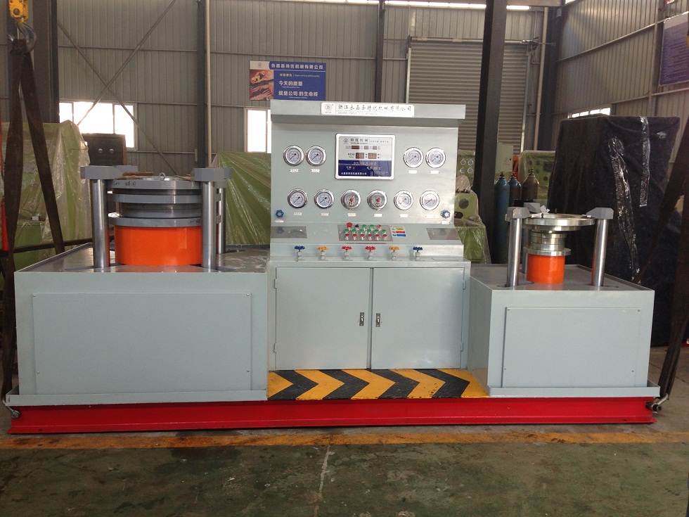 五、測試蝶閥時,首先根據(jù)被試閥門試驗壓力,要求參照《壓緊油缸所需壓力對照表》中液壓壓緊系統(tǒng)壓力值,進行增壓壓力調(diào)節(jié),嚴禁增壓壓力值超高、防止被試閥門變形損壞。