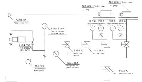六、液壓供壓水泵開始工作前,先調(diào)節(jié)好電接點壓力表與被試驗閥門壓力相同,然后進行工作。