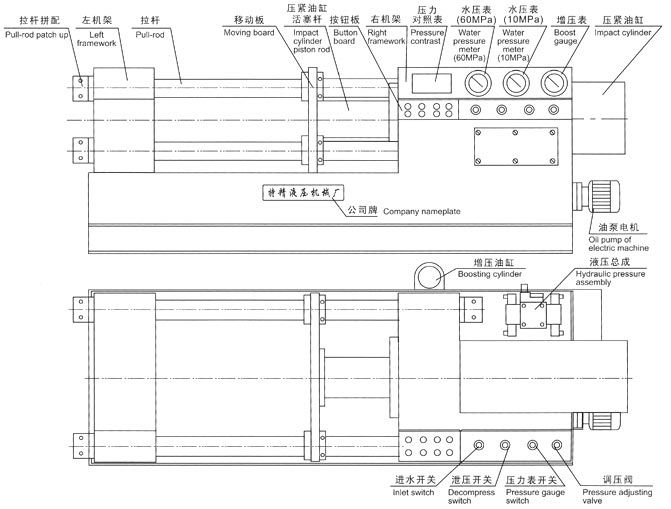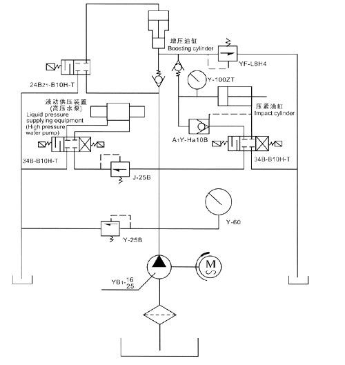 四、接通電源,按油泵起動,檢查電機轉(zhuǎn)動方向是否正確(順時針方向),調(diào)節(jié)油泵壓力在5 0MPa進行試機,檢查各管路有無泄漏,發(fā)現(xiàn)不良現(xiàn)象應(yīng)立即進行檢修。