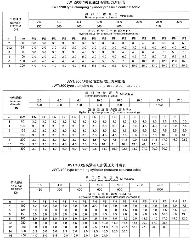 五、測試閥門時,首先根據(jù)被試閥門試驗要求參照《壓緊油缸所需壓力對照表》進行試驗壓力增壓調(diào)節(jié)。嚴禁增壓超高壓工作。防止被試閥門變形損壞。