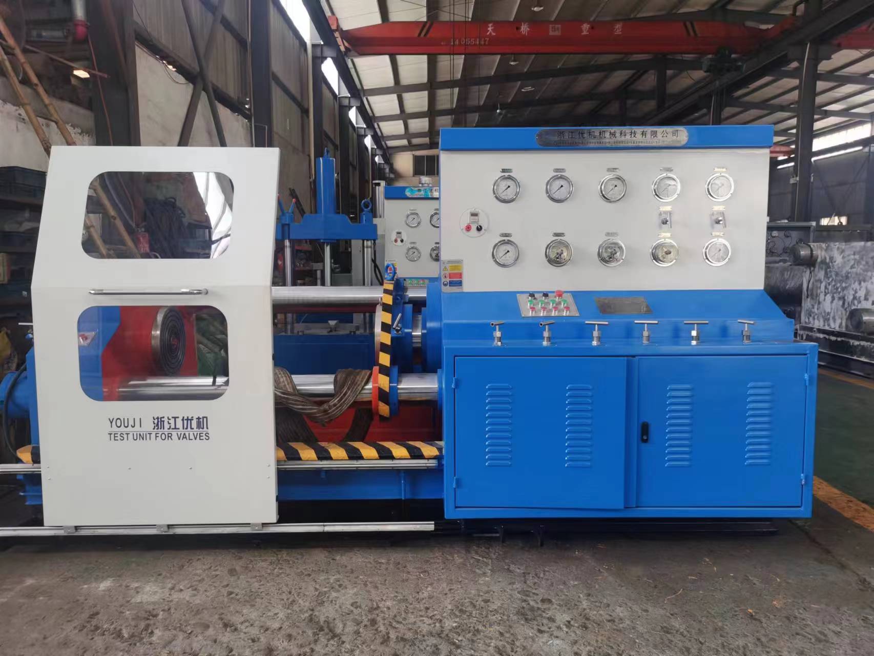 JWT型液壓焊接閥試驗臺集液壓,機械、電器、液動供水泵于一體,采用液壓油缸壓緊。對被試閥門進行性能試驗。液壓系統(tǒng)是本測試臺的動力主源,用于液壓油缸驅(qū)動和液供水泵的功能執(zhí)行。液壓油缸壓緊工作壓力是按閥門試驗壓力等級不同進行調(diào)節(jié)增壓(最高液壓增壓壓力31.5MPa)。壓緊可靠功能滿足通徑大小和壓力等給不同閥門的測試。液動供水泵裝置有微壓和高中壓二檔,依照本測試操作順序,在電器和減壓調(diào)節(jié)閥門的控制下,進行閥門介質(zhì)壓力試驗,供水泵壓力范圍0.4-48.0MPa,供壓介質(zhì)防銹水或油液。本測試臺底部設(shè)置貯存水箱,確保液體介質(zhì)循環(huán)使用。