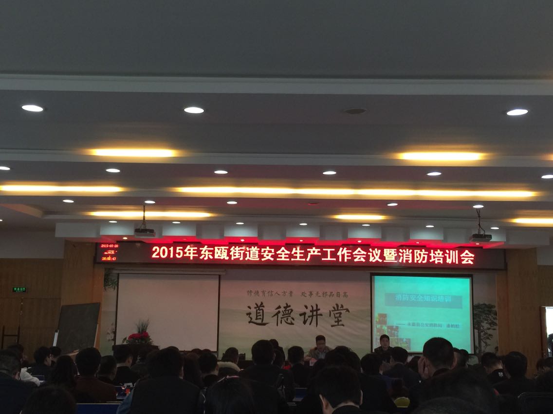 3月21日東甌街道(永嘉東甌工業(yè)園區(qū))安全生產(chǎn)工作會議暨消防培訓(xùn)會在東甌工業(yè)園區(qū)舉行,本次會議有東甌街道黨委副書記主任杜國平主持,工業(yè)園區(qū)副主任做去年工作報告和今年的工作重點,園區(qū)副書記朱琳哲重點對消防的重要性、消防預(yù)防步驟、事故案例等做了詳細的介紹和分析,并囑咐個企業(yè)負責(zé)人和主管部門嚴把安全生產(chǎn)關(guān),定期做安全檢查,對達不到安全生產(chǎn)標準的部門和企業(yè)馬上整改,做到萬無一失。
